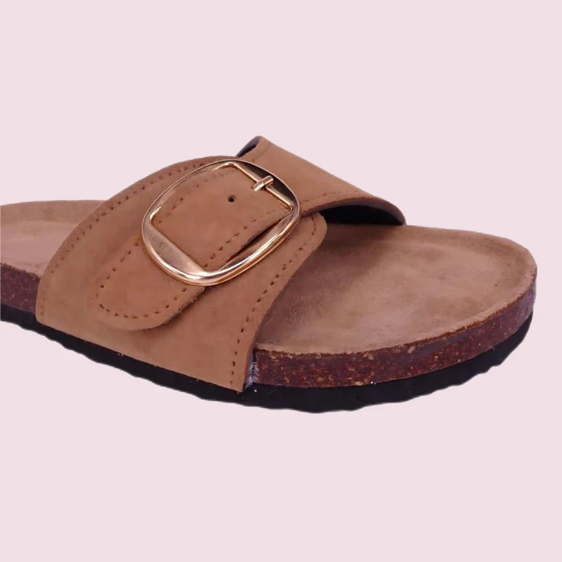 ТИАНКСИУ женске сандале са једном копчом од праве антилоп плуте постале су популаран избор на тржишту због свог минималистичког и модерног дизајна, удобних и издржљивих материјала, као и њиховог разноврсног искуства ношења. Ако тражите пар папуча које су и лепе и практичне, онда је ова стилизована папуча од плуте дефинитивно ваш најбољи избор.