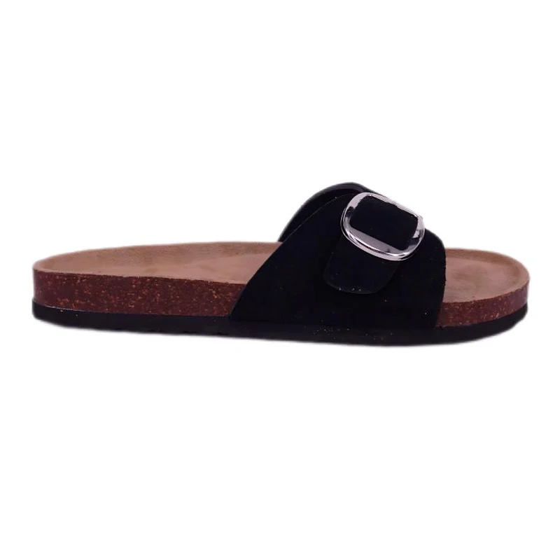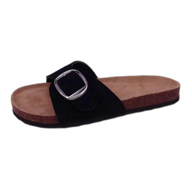 ТИАНКСИУ женске сандале са једном копчом од праве антилоп плуте са великим дизајном металне копче, свечаном и елегантном црном површином ципела, браон ђоном од природног материјала и минималистичким, али модерним стилом дизајна, издвајају се међу многим папучама. Било да се носи код куће или за лагану шетњу напољу, показује укус и стил корисника.